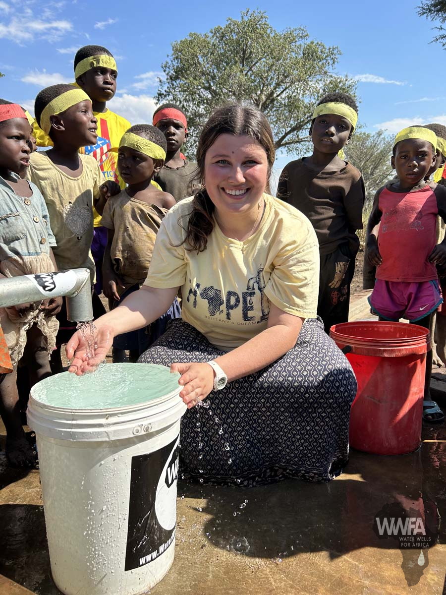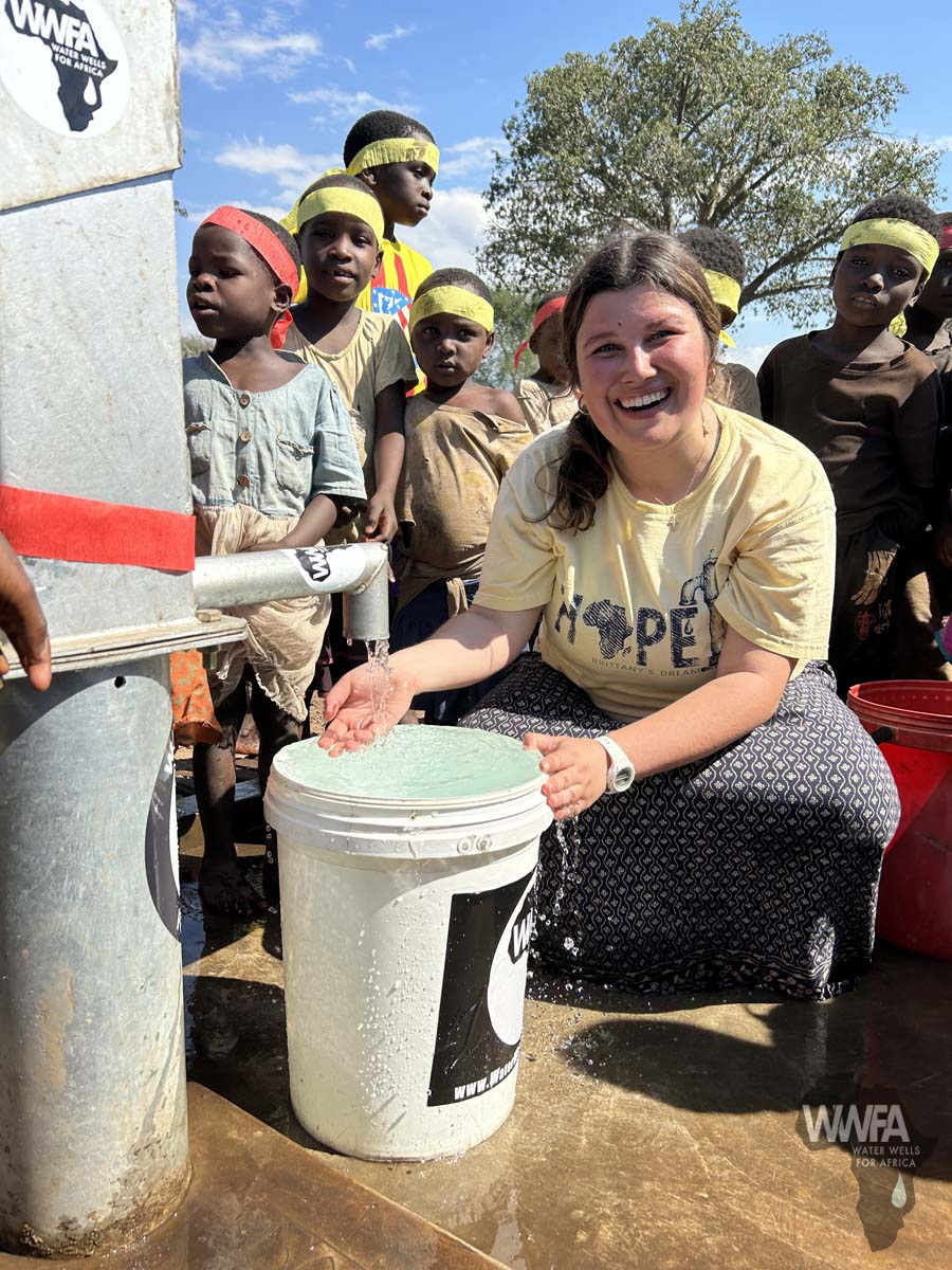 In 2023, at age 21 and on a break from college, Brittany embarked on her third trip to Malawi, now as the Marketing Intern for Water Wells for Africa.  On this journey, she took on a leadership role, serving as a spokesperson for the Blossom Project. She shared how clean water creates a ripple effect: bringing children to school, keeping them there with access to water, and empowering girls to stay in school through improved hygiene facilities. Brittany also had the opportunity to visit wells dedicated to her and her family, experiencing firsthand the long-lasting impact of her work.