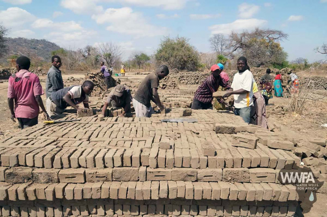 Once the water started flowing at M’bawa School, the community was motivated to use some of the well’s runoff water to further develop the school’s infrastructure. Their plan? Mix the water with local dirt to create bricks. These bricks would be used to build two new classrooms, two houses for teachers, and a staff office.