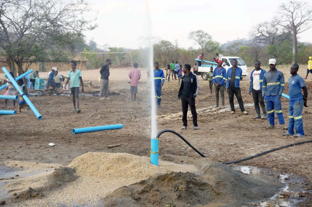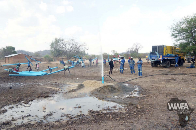 Here you can see our drillers getting ready to drill down and install pipes that will bring the water up.
