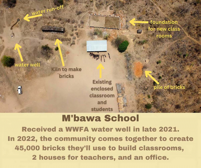 One of the schools, M’bawa School in Makokola village, received the gift of water from WWFA in late 2021.